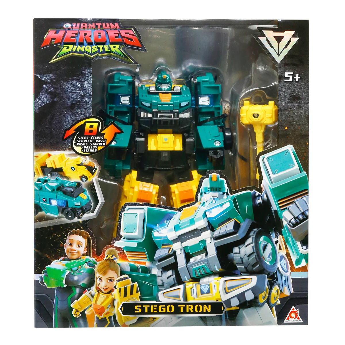 Вивчайте та рятуйте динозаврів разом зі Стего Троном! Грайте, трансформуйте і пірнайте у дивовижні пригоди, адже з цим роботом ви можете змінювати героя відповідно до сюжетної лінії гри у два дино-траки. Приєднуйтеся до команди!