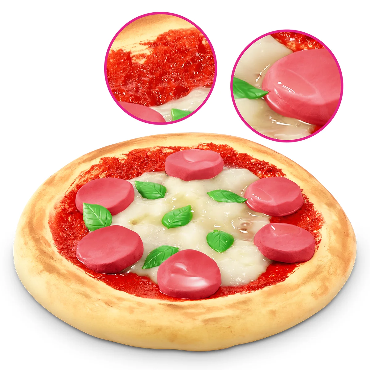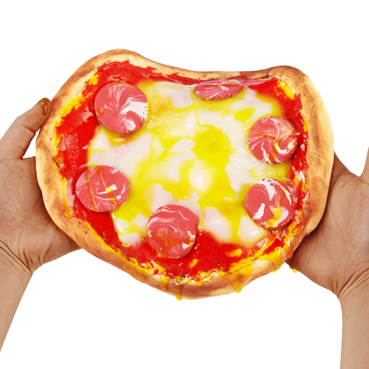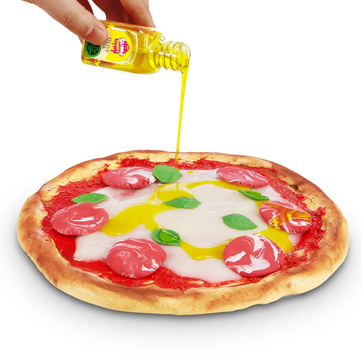 - Створи іграшкову піцу з різних видів слайму, додаючи елементи «начинки».