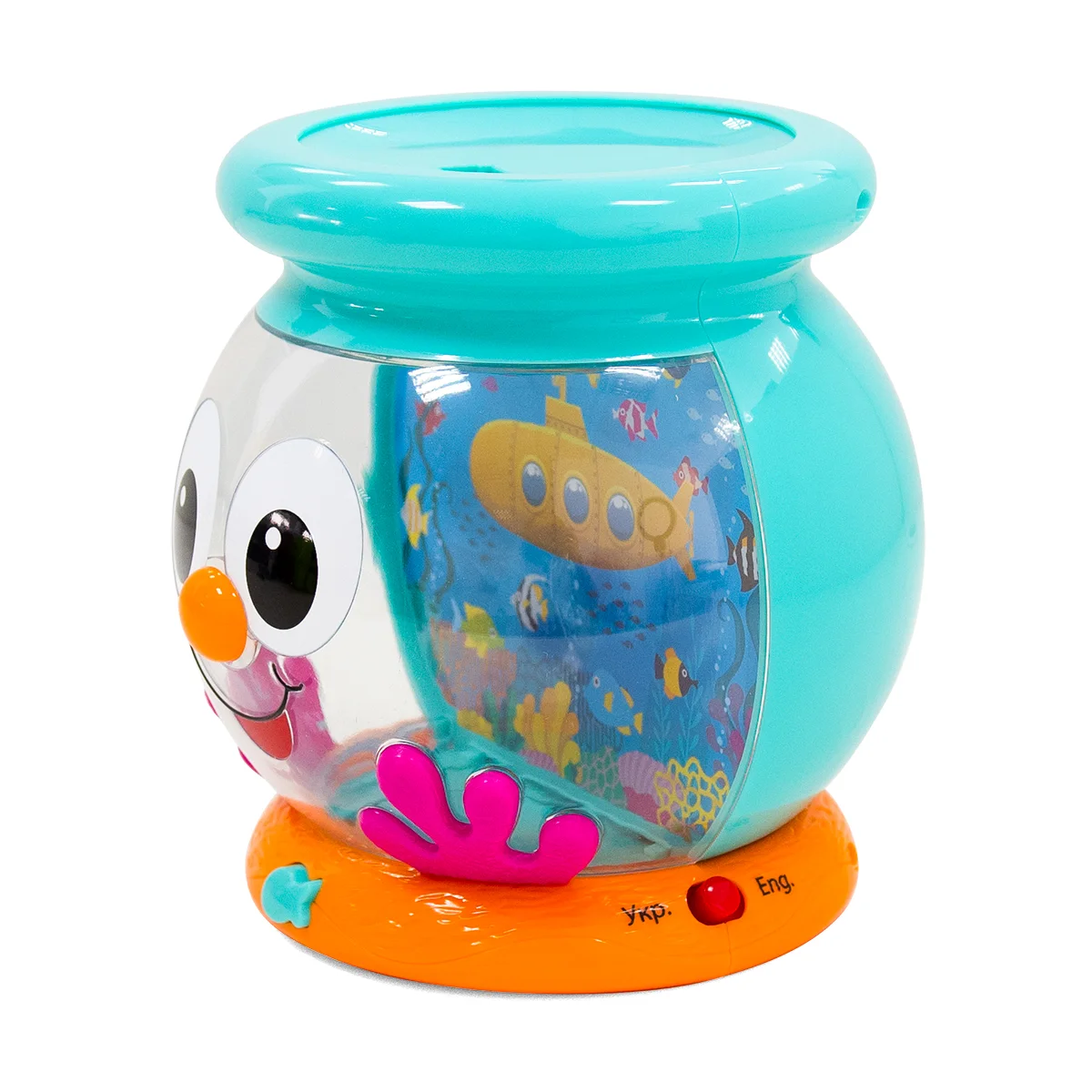 - Яскравий дизайн іграшки викликає позитивні емоції та допоможе розвинути емоційний інтелект дитини: акваріум і рибки мають приязно усміхнені вирази облич.