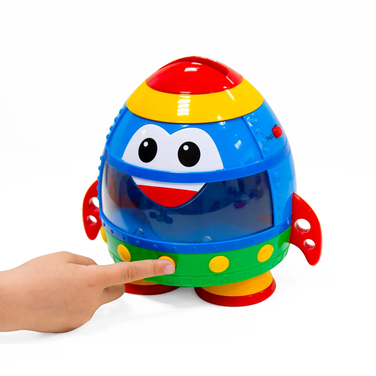 - Всі диски з космічними об’єктами зручно зберігати всередині іграшки, а також легко витягати: достатньо відкрити кришку відсіку на задній стороні іграшки.