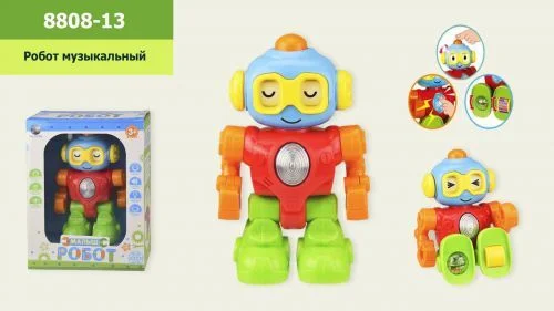 Інтерактивна іграшка "Малюк робот" стане чудовим товаришем дитині. При натисканні на кнопку у робота на грудях, він говоритиме кумедні фрази та відтворюватиме різні звуки. Якщо натиснути на кнопочку на голові, очі будуть крутитися, таким чином показуючи різні емоції. Також позиції очей можна міняти, обертаючи "вушка". На стопах у робота знаходиться прозоре брязкальце з кульками та коліщатко, яке дитина зможе крутити. Висота іграшки: 20 см. Працює від 3-х батарейок АА.