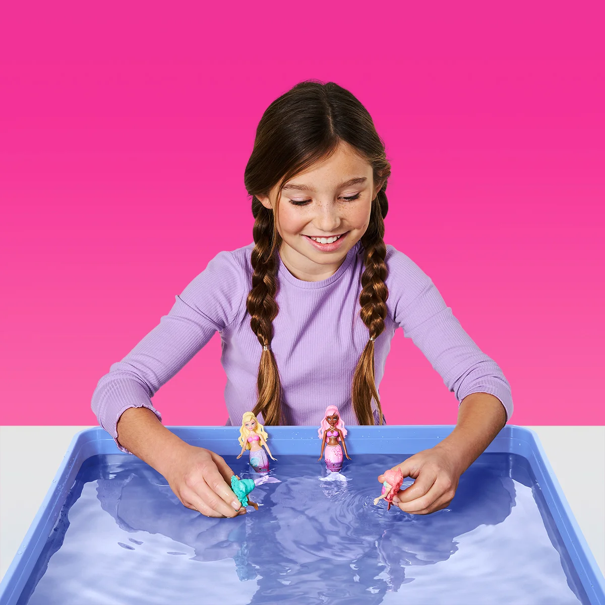 Чарівна русалонька Перлинна Мушля відкриває шлях до таємничого підводного світу, повного легенд і чарів. Занурте її у воду — і русалонька пробудиться, рухаючись так легко й плавно, ніби оберігає секрети морського королівства.
