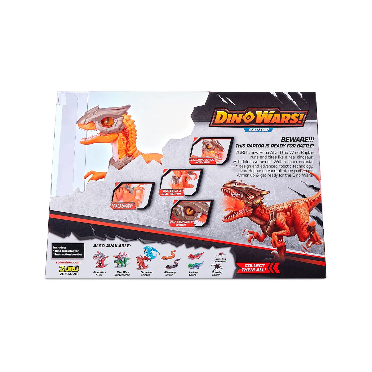 Інтерактивна іграшка ROBO ALIVE серії "ВІЙНА ДИНОЗАВРІВ" - БОЙОВИЙ ВЕЛОЦИРАПТОР - це реалістичний робот-динозавр у броні.