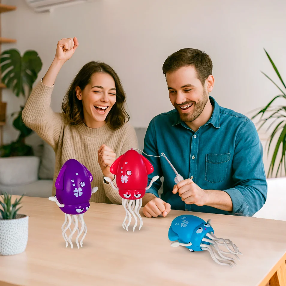 Поринайте на 100% у танцювальний вайб Кальмаріні! Натисніть кнопку — і він запускає своє шоу: світло пульсує, музика звучить, щупальця рухаються в ритмі, а кімната перетворюється на морський танцмайданчик.