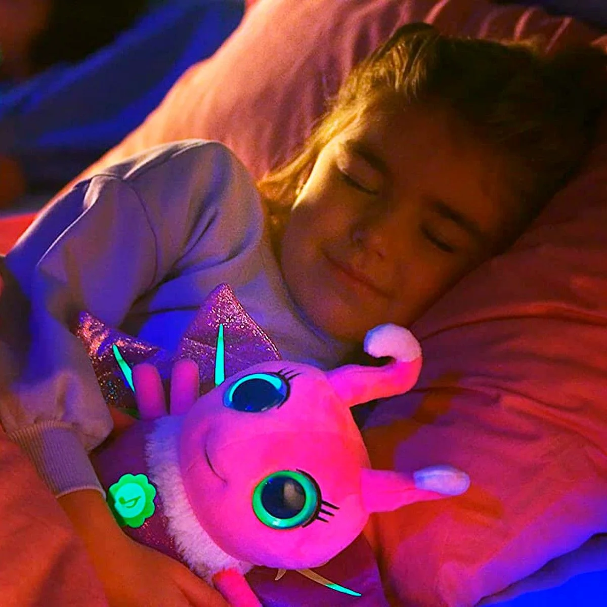 Інтерактивна м'яка іграшка GLOWIES - ідеальний подарунок для малюків! Вона не тільки м'яка та приємна на дотик, а ще справжній компаньйон для сну! Малюку буде дуже комфортно засинати поряд з таким другом-світлячком!