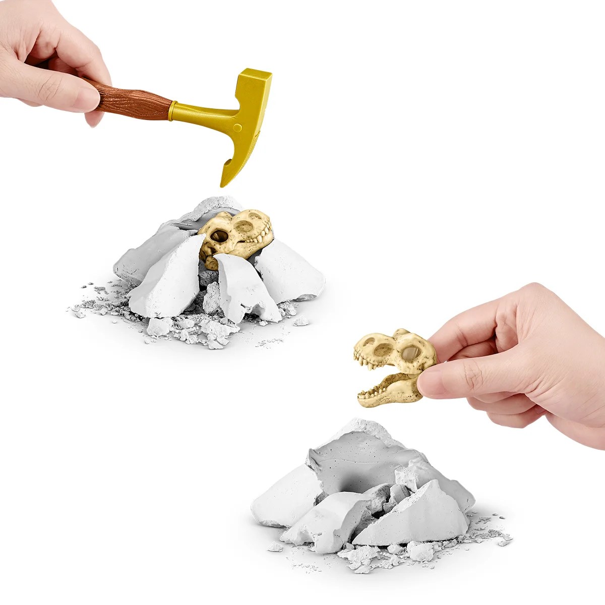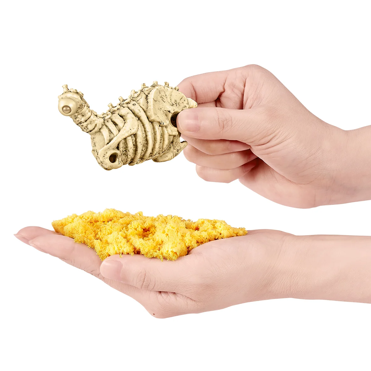 - Відкривайте пакування та шукайте частини скелета. Іграшкові кістки можуть бути заховані у слаймі, у кінетичному піску чи навіть у "камені". За допомогою спеціального інструменту розбивайте "камінь" та знаходьте частини скелета, як справжні археологи.