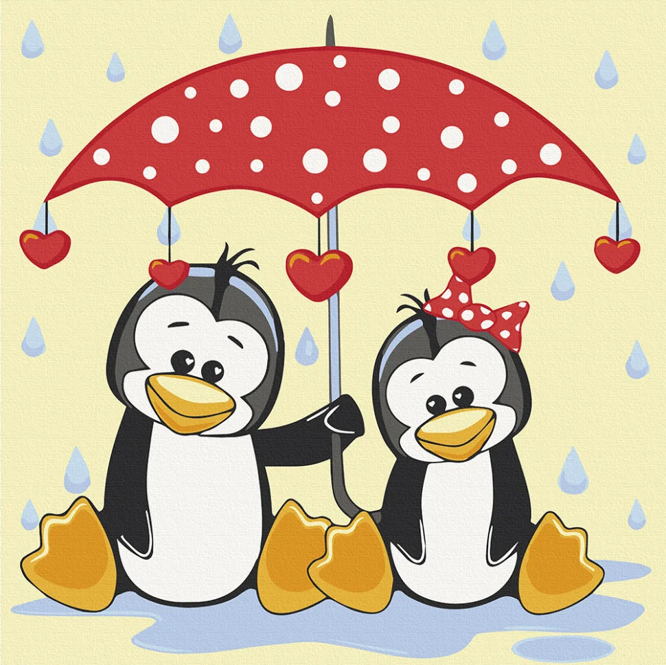 Картина за номерами. Art Craft Пінгвіни під парасолькою 30х30 см 15543-AC