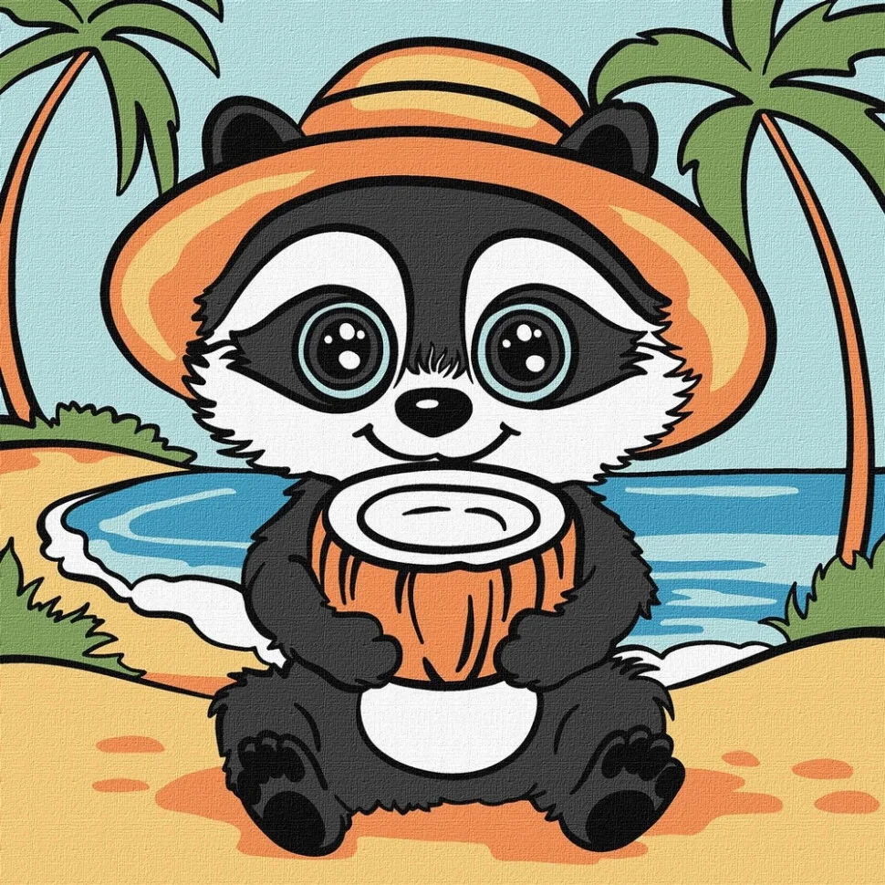 Картина за номерами "Єнот і кокос" ©art_selena_ua KHO1242, 25х25 см