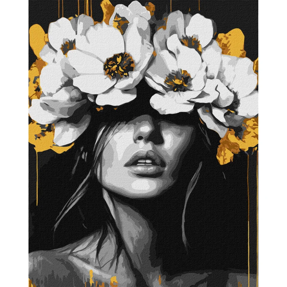 - Натуральне полотно на підрамнику із галерейною натяжкою. На картині нанесено схему контурів зображення з нумерацією