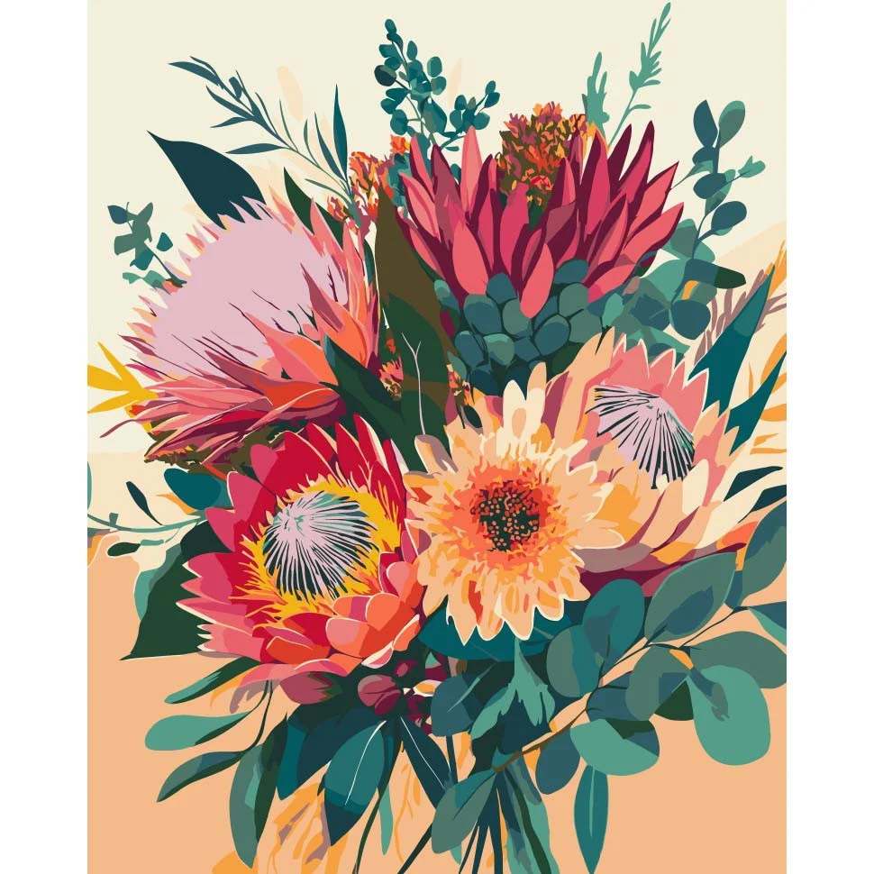 За допомогою картин за номерами, всі без винятку зможуть оволодіти мистецтвом живопису, відчути радість творчості і розкрити свої внутрішні таланти. Ці набори для творчості стануть хорошим подарунком незалежно від віку, статі чи професії. Вони слугують відмінним інструментом для розвитку дрібної моторики і творчого мислення у дітей. І найважливіше, картини за номерами наділені анти-стрес ефектом. До набору входить: 1. Полотно на дерев'яному підрамнику з нанесеними контурами та цифрами. Поєднання збалансованого складу полотна на бавовняній основі, спеціально розробленого акрилового грунту та механічна натяжна – гарантує пружність полотна та стійкість до провисання. 2. Комплект пензликів (3 шт.) різної товщини зроблені з еластичного нейлону. Такими пензликами дуже зручно замальовувати всі контури. 3. Акрилові фарби виготовлені з екологічно чистих матеріалів. Ми створюємо яскраві і барвисті кольори, стійкі до вицвітання. Кожен набір для малювання по номерам упакований в герметичну упаковку. Розмір картини: 40х50 см. Складність картини 5 Зірок (Складний) Кількість кольорів 24