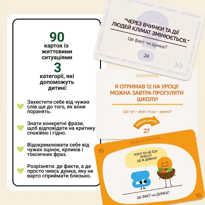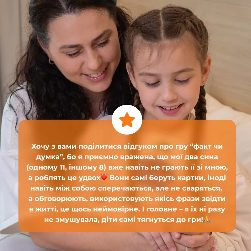 “ФАКТ чи ДУМКА?” – це гра, яка вчить дитину не приймати чужі слова як істину.