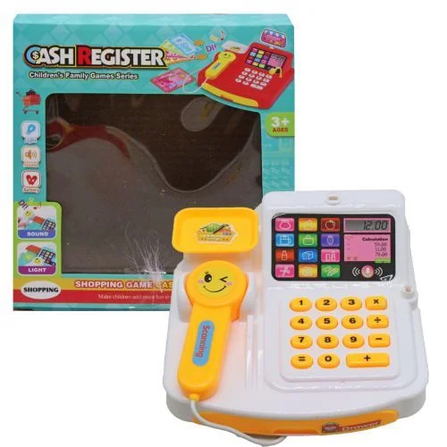 Невеликий касовий апарат на батарейках. Сканер видає характерний звук, червоне підсвічування. Висувний відсік для грошей. 4 паперові купюри, 4 монети та пластикова карта в комплекті. Допоможе дітям, в ігровій формі, зрозуміти основи грошових операцій та розвивати навички рахунку. Працює від 2-х батарейок АА (немає в комплекті).