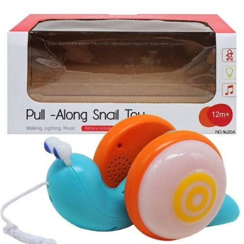 Музична каталка "Равлик". Каталка на шнурочку розважить малюка, а також подарує море позитивних емоцій. Є звукові ефекти – грає весела мелодія. А також світиться панцир. Тіло равлика рухливе. Працює на батареях AG 13 (йдуть у комплекті). Розмір равлика - 18х9х10 см. Виконана з якісного та міцного пластику, для дітей від 1 року.
