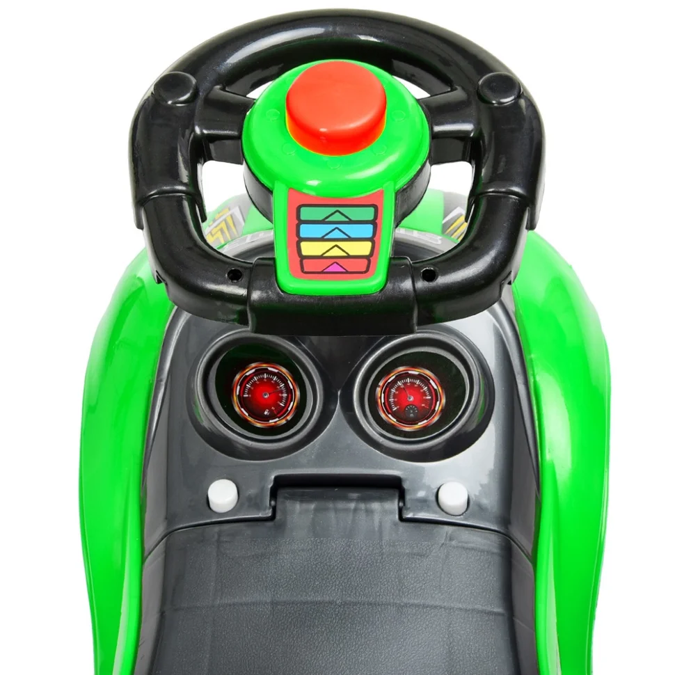 ГАБАРИТНИЙ РОЗМІР: довжина (машина/з батьківською ручкою) 60см / 81см ширина (по колесам/з підставкою для ніг) 27см / 44см висота до спинки 47см висота до батьківської ручки висота 85см до керма 39див ВИСОТА ВІД ПІДЛОГИ ДО СИДІННЯ 24см ВИСОТА ПІДСТАВКИ ДЛЯ НІГ ДО СИДІННЯ 17см МУЗИКА + ЗВУК пищалка (на кермі) СВІТЛО передні фари + БАТ-КИ 2АА (у комплект не входять) БАГАЖНИК ПІД СИДІННЯМ + БАТЬКІВСЬКА РУЧКА + ПІДСТАВКА ДЛЯ НІГ + СИДІННЯ пластик, ЗАХИСТ ВІД ПАДІННЯ + КОЛЕСА: розмір,см 13см пластик/пластик EVA КОРОБКА (БРУТТО/НЕТТО/РОЗМІР) 3,95 кг /3кг / 62,5-30,5-35см (COLOR BOX)