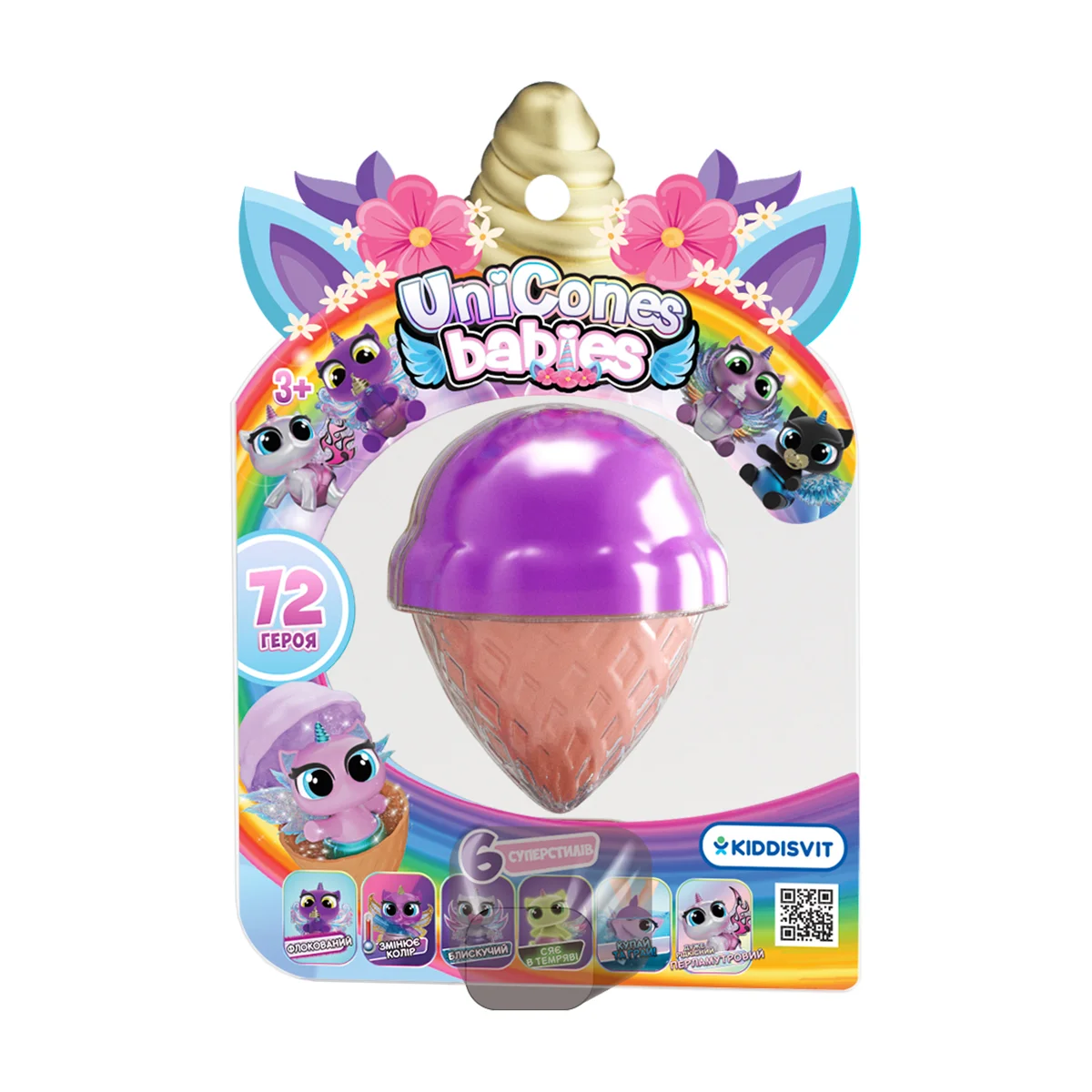 Зустрічайте нову колекцію малюків-єдинорогів UNICONES BABIES! Що може бути чарівніше за цих казкових істот? Малюки можуть мати різні кольори і стилі, є навіть герої, яких спочатку потрібно викупати, щоб дізнатися, якого ж вони кольору! А ще кожен герой має свої неймовірні крила! Зберіть всю колекцію і дізнайтеся, хто попався саме Вам!