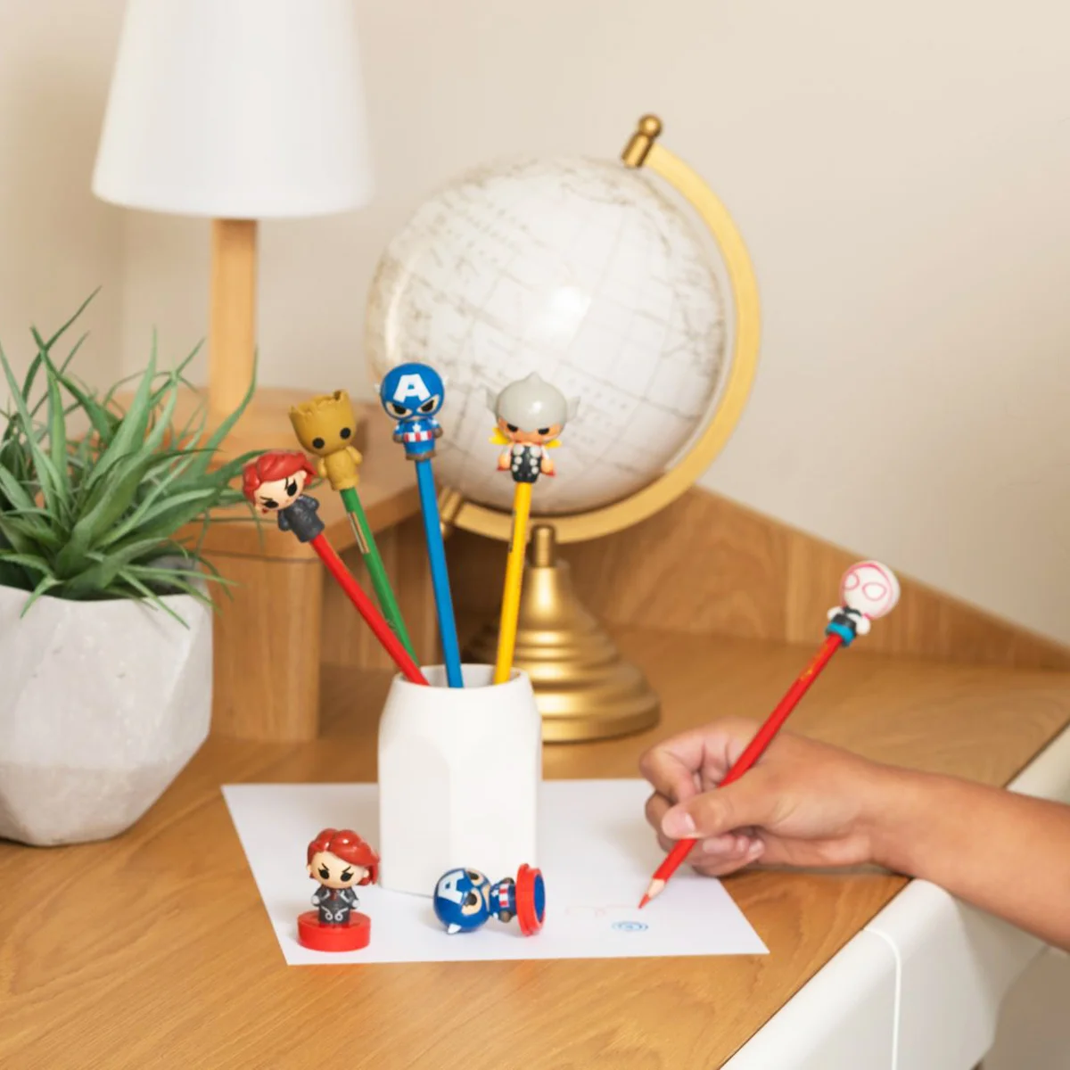 Зустрічайте улюблених героїв зі всесвіту Марвел! Яскраві фігурки-топери серії «Bop n Tops» додають креативності та веселощів у повсякденну письмову роботу чи виконання завдань. Фігурки-топери у вигляді улюблених героїв Марвел можна одягти на олівець чи ручку, збирати колекцію та грати як самостійними фігурками! Обирайте, хто з героїв Вам більше до вподоби?