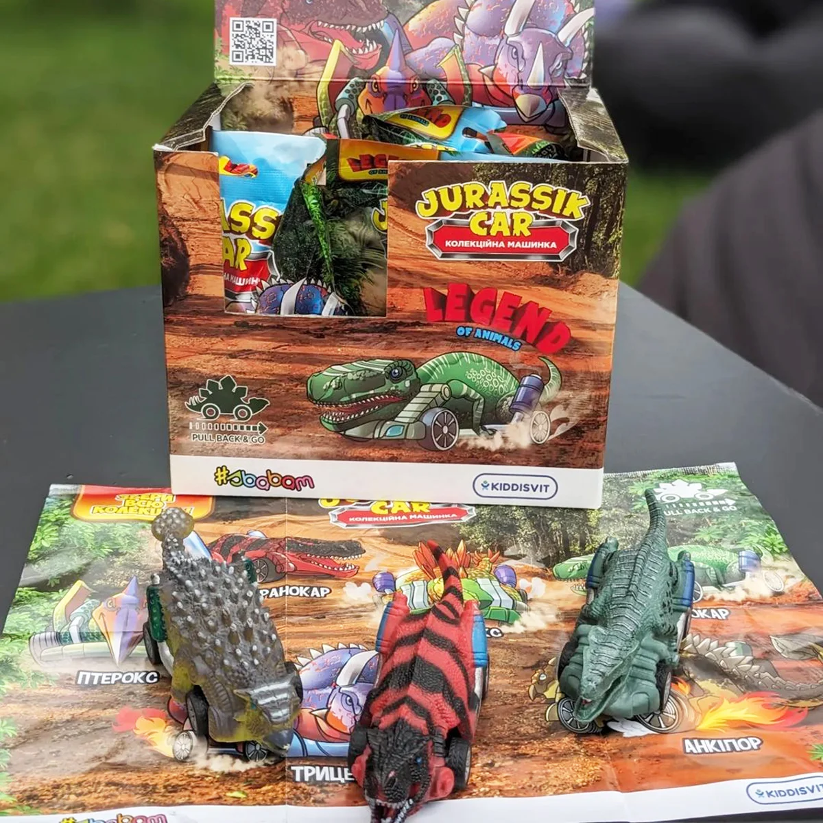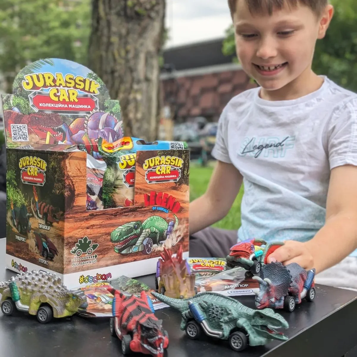 - Кожна машинка виконана у вигляді динозавра зі своїм ім’ям: Тиранокар, Трицерокс, Стегокс, Птерокс, Анкілор, Раптокар. Хто твій чемпіон?