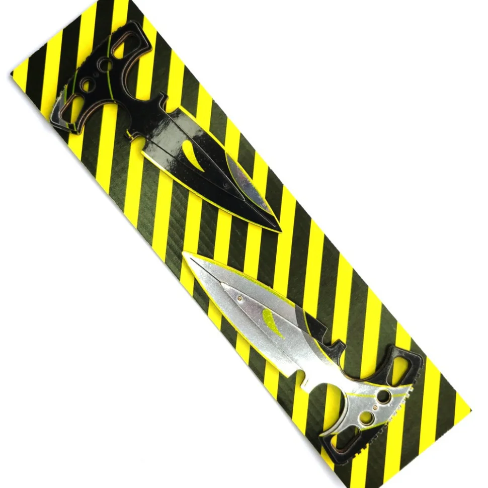 Набір із 2-х тичкових ножів "SO-2". Матеріал: фанера. Довжина одного ножа - 14 см, ширина ручки - 7 см. Чудовий подарунок-сувенір. Ножі дерев'яні, якісні та міцні. Не заточені, гострі частини закруглені та зашліфовані, повністю безпечні. Для дітей від 6 років.