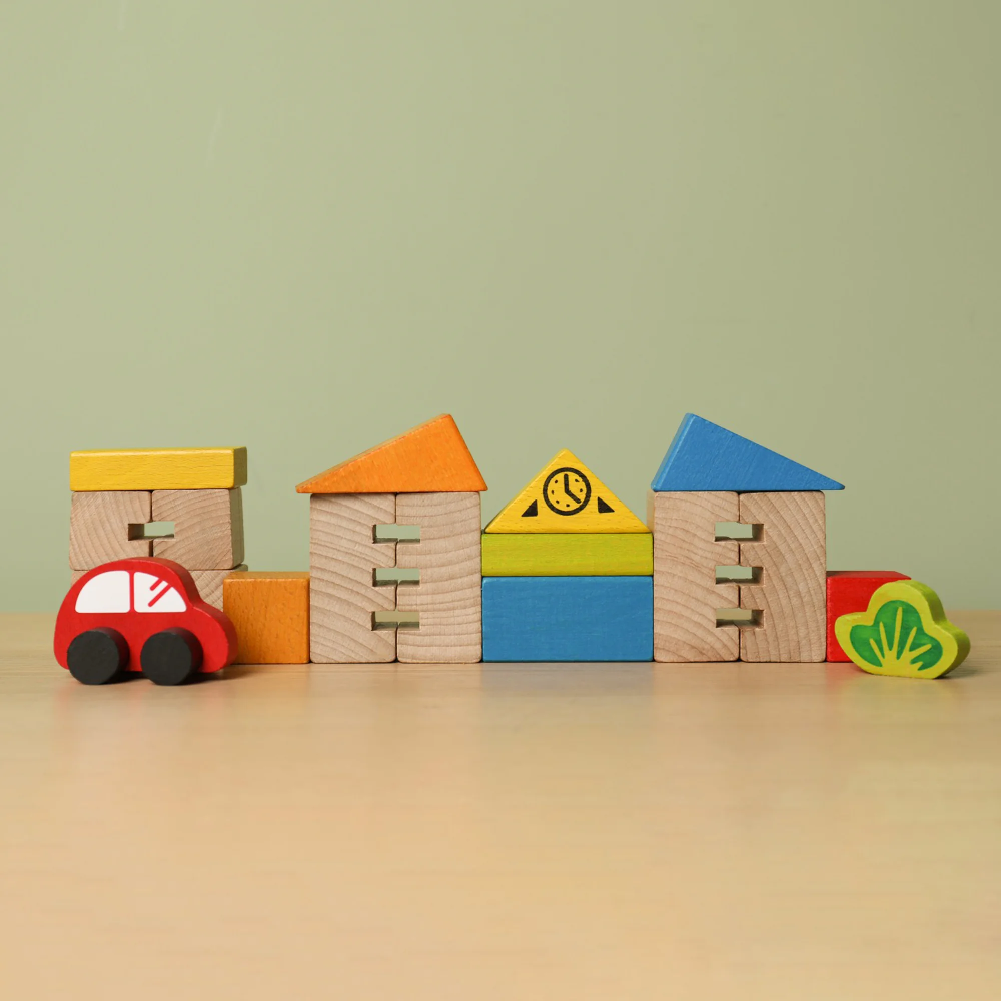 Дерев'яні блоки для малюків "Місто" з машинкою - чудова гра для маленьких любителів будувати та їздити.