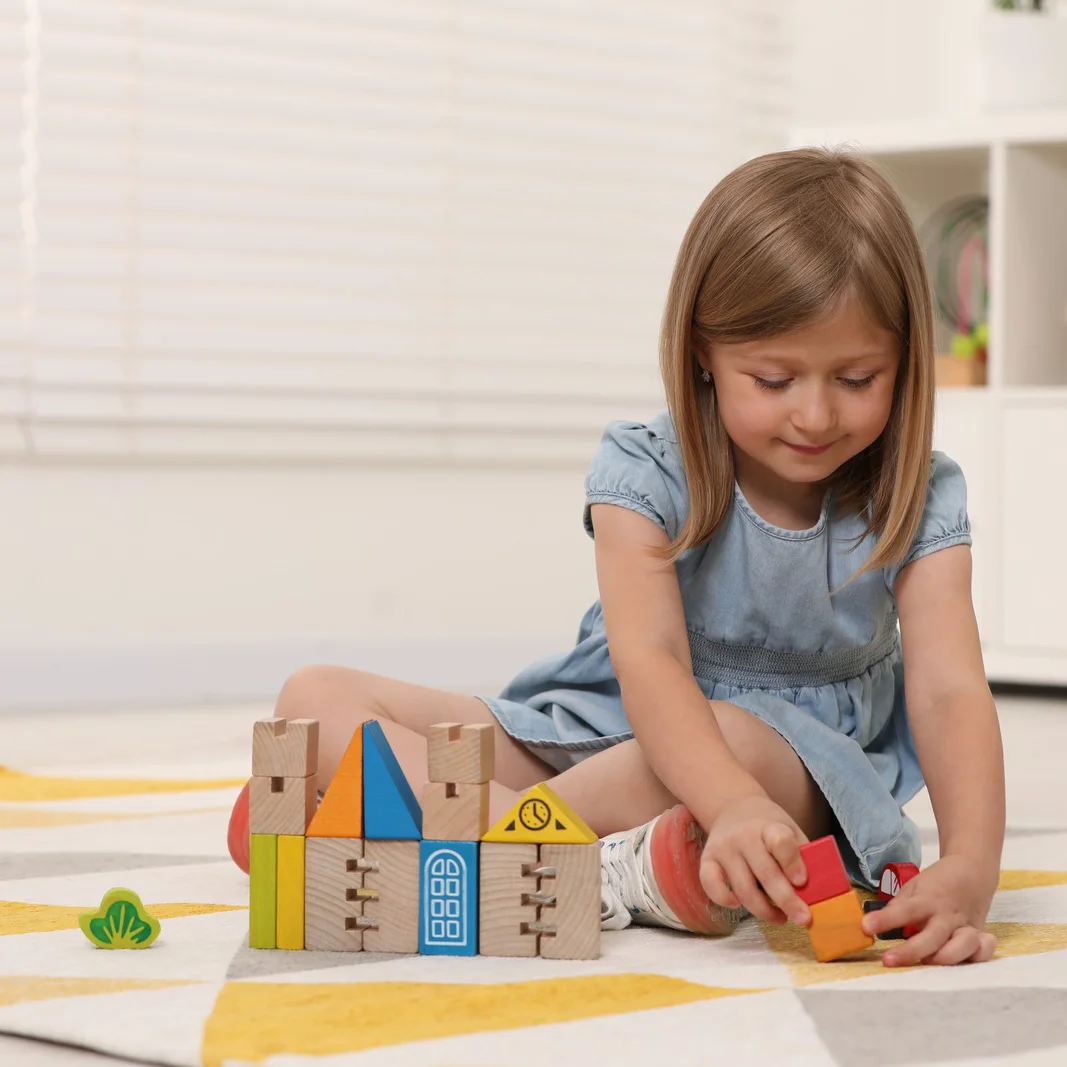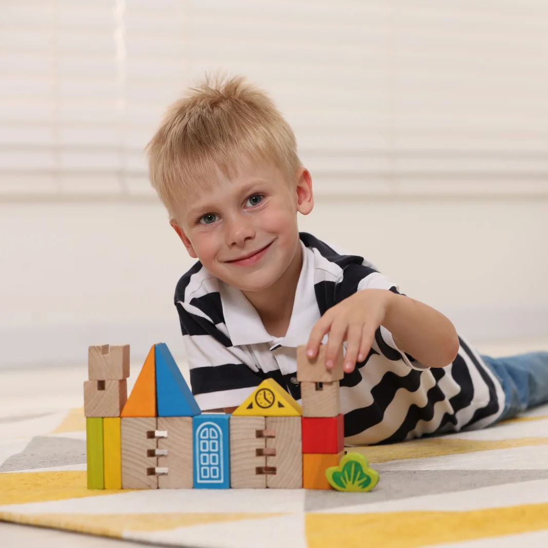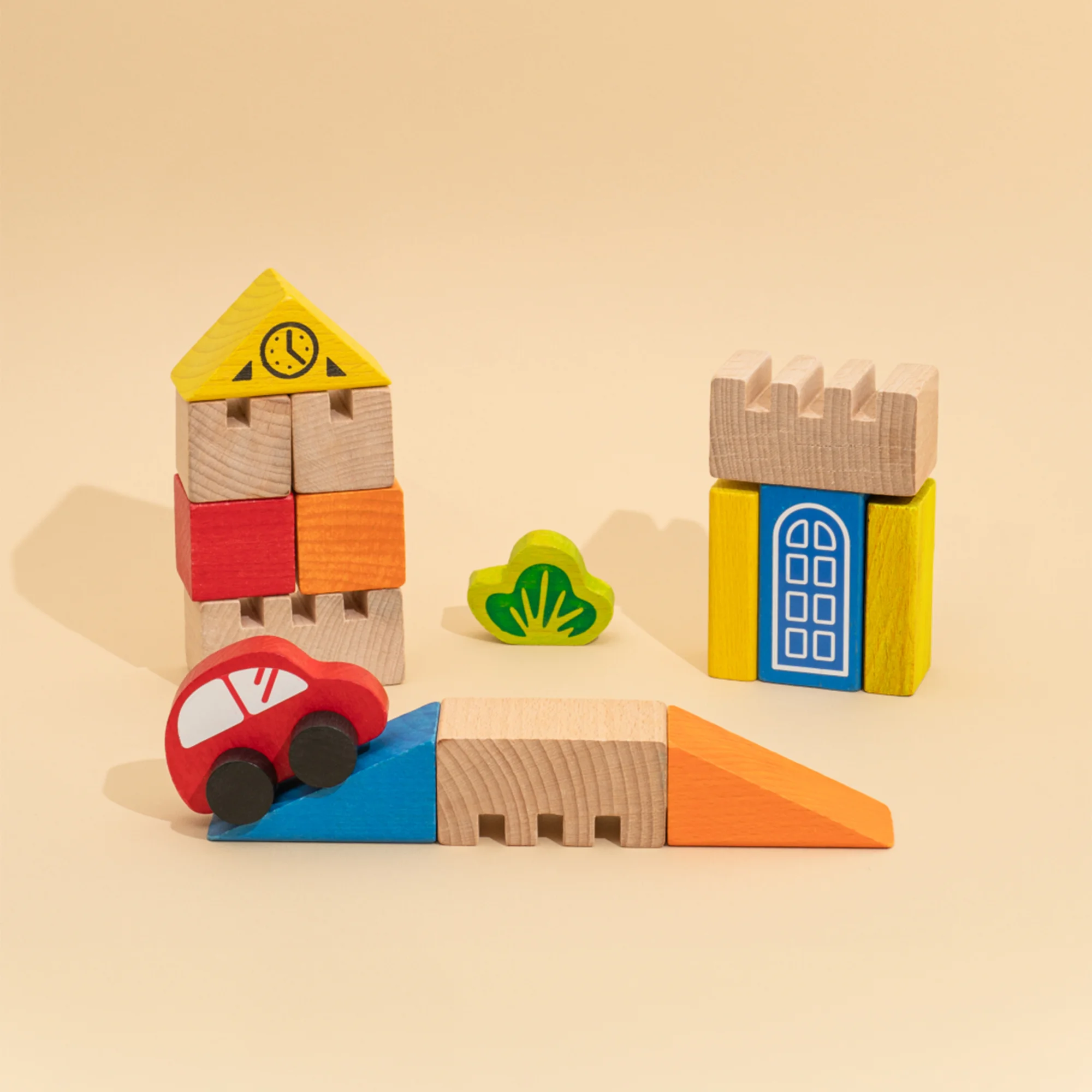 З 18 фігур можна побудувати невелике містечко, мости, хмарочоси, їздити машинкою, а також поєднувати їх з іншими іграшками малюка.