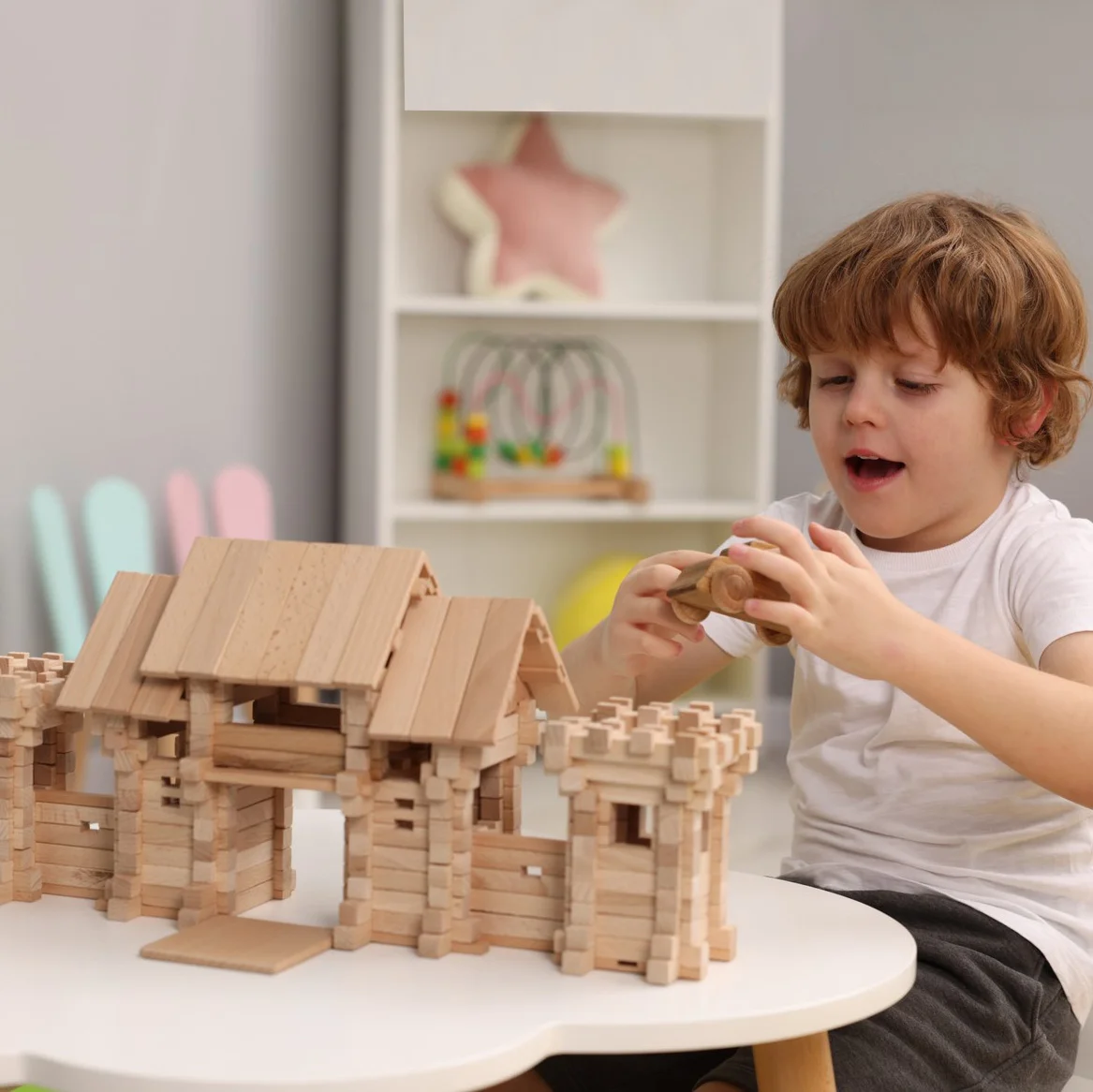 Увага! Як і справжні будинки, наші конструктори радимо почати складати з фундаменту ! На рівні твердої поверхні викладіть нижній рівень, а потім рівень за рівнем, брус за брусом зведіть стіни, перекладіть деталі паз-в-паз, закріпіть їх, робіть перемички, з'єднуйте прибудови і накривайте дахом! Все як у справжньому житті!