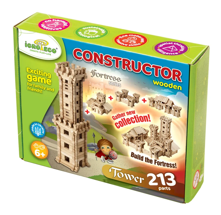Конструктор «Вежа» призначений для діток від 6-ти до 12-ти років. Вежа – це оборонна будівля, яку традиційно споруджували в старовину, на пагорбах або в мурах укріплених міст для захисту від ворогів, звідти вартові могли нести варту, спостерігати за фортецею, тим самим оберігаючи місто від ворогів.