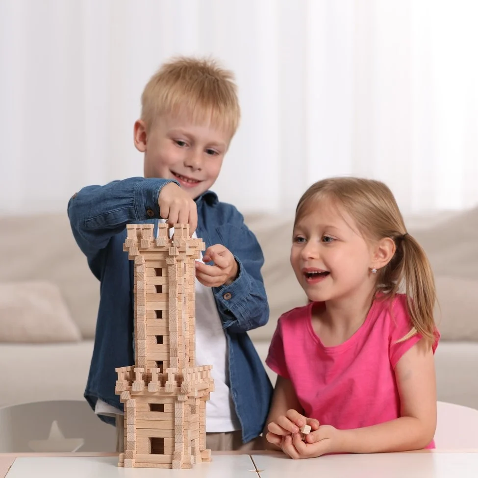 Конструктор містить в собі 213 деталей, дає можливість побудови високої (45 см) вежі, а також легко трансформується у справжнього вікінга або потяг, має детальну поетапну інструкцію, що зробить ігри вашої дитини різноманітними та натхненними. Навчившись складати по інструкції, зрозумівши принцип побудови паз-в-паз, дитина зможе конструювати фантастичні фігури та об’єкти на власний смак та розсуд.