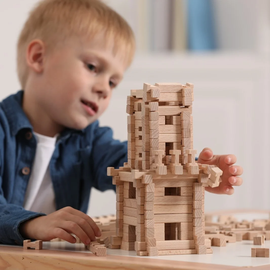 Увага! Як і справжні будинки, наші конструктори радимо починати складати з фундаменту! На рівній твердій поверхні викладіть найнижчий рівень, а потім рівень за рівнем, брус за брусом зводьте стіни, перекладайте деталі паз-в-паз, кріпіть їх, робіть перемички, з’єднуйте прибудови і накривайте дахом! Все як у справжньому житті!