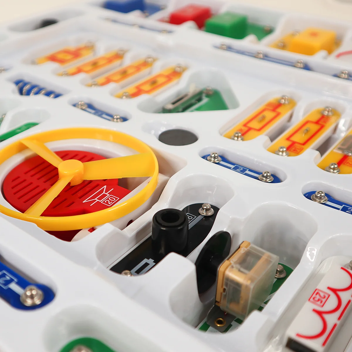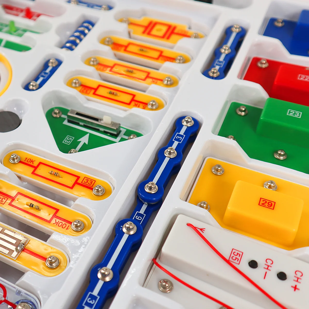 Збираючи конструктор, дитина познайомиться з дивовижним світом електроніки в ігровій формі. У схемах використовується ручне, магнітне, світлове, водяне, звукове, електричне, а також сенсорне керування. Завдяки оригінальному способу з’єднання деталей Ви зможете домогтися швидкого і ефективного результату без використання паяння.