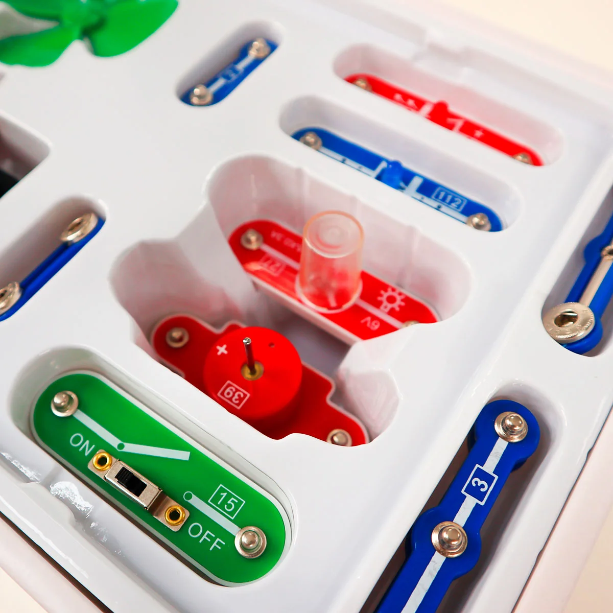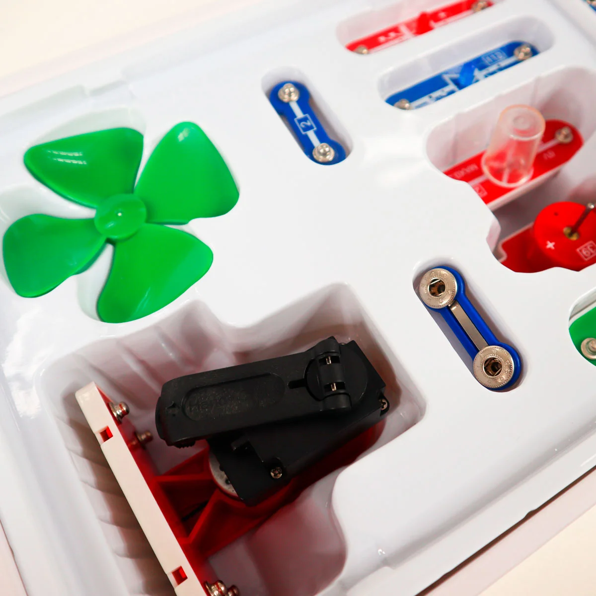 Конструктор дозволяє дитині своїми руками створювати механічну енергію, допоможе в знайомстві з логічними елементами та ручним генератором, регулювати енергію вітру. Завдяки оригінальному способу з’єднання деталей Ви зможете домогтися швидкого і ефективного результату без використання паяння.