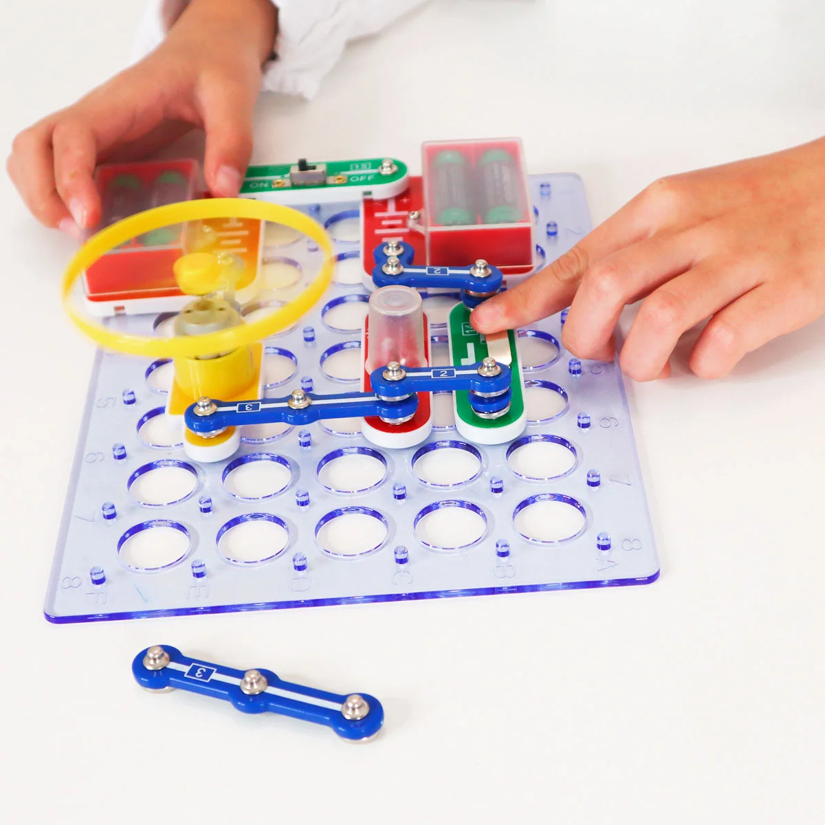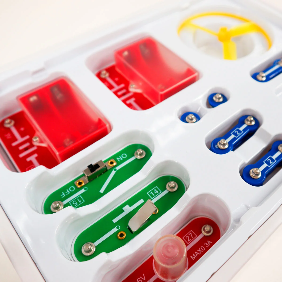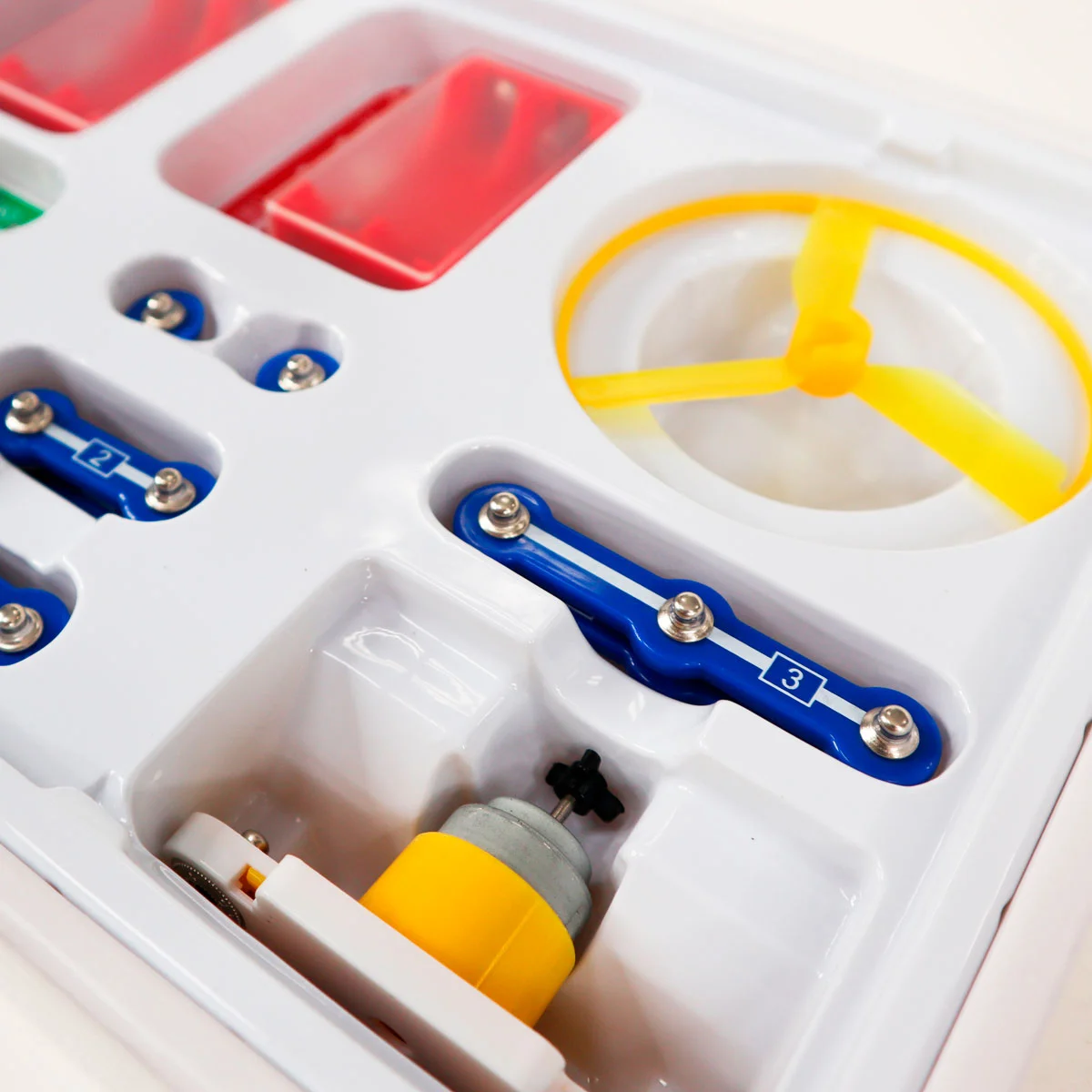 Конструктор дозволяє дитині своїми руками створювати запуск пропелера та зробити ліхтарик, допоможе в знайомстві з логічними елементами, вивченні електродвигуна, регулюванні яскравості світла. Завдяки оригінальному способу з’єднання деталей Ви зможете домогтися швидкого і ефективного результату без використання паяння.