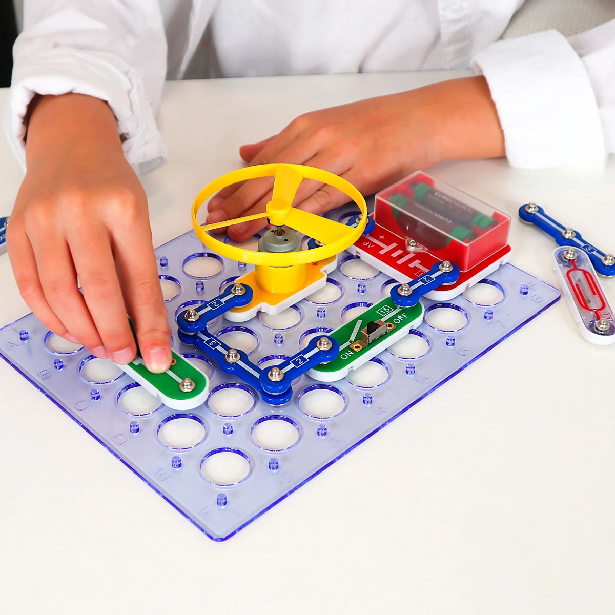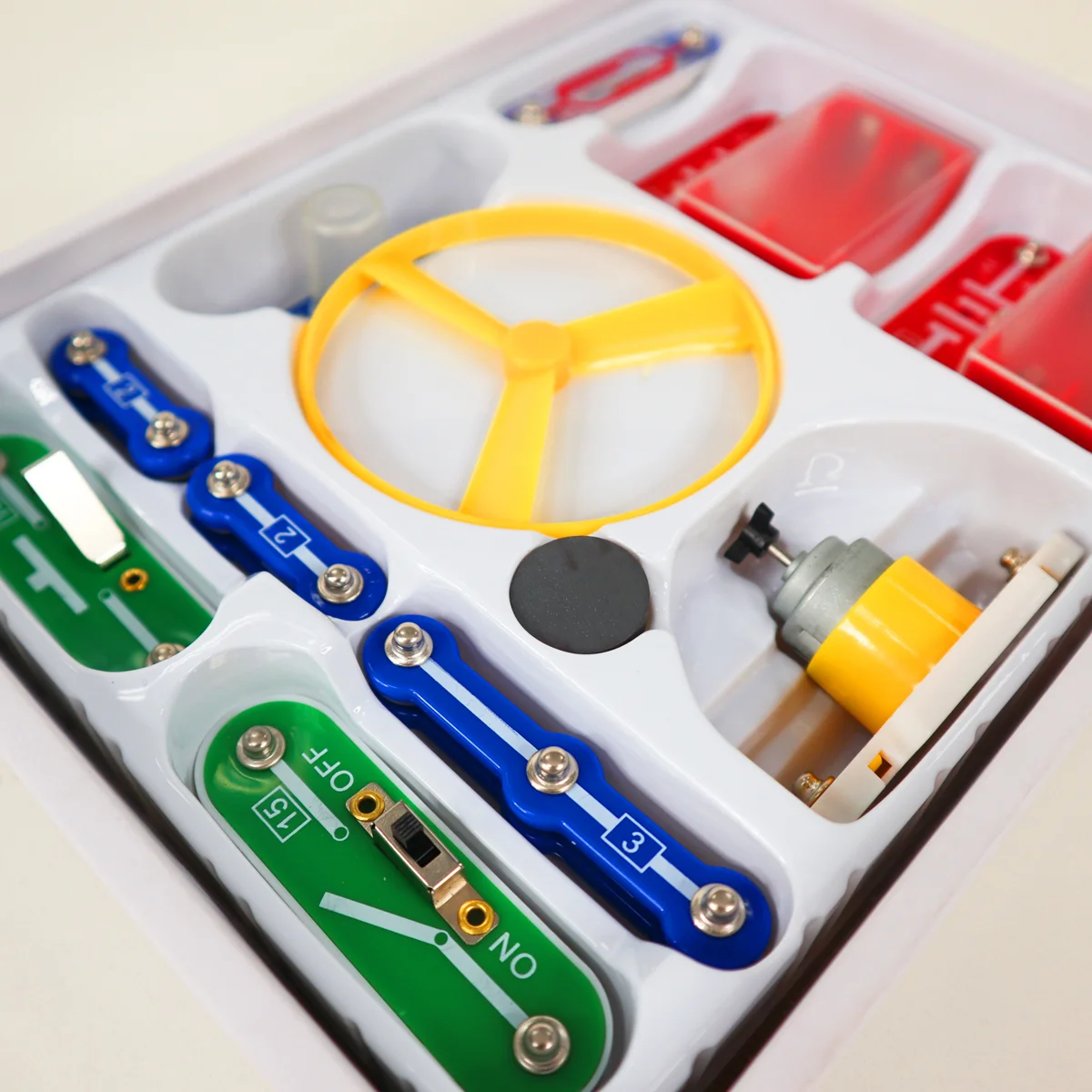 Конструктор пропонує 15 різних схем, для збору яких дитина зможе скористатися провідниками, елементами живлення, вимикачами, лампами і електромоторами, збираючи їх і відкриваючи для себе багато нового і цікавого, при цьому не використовуючи небезпечний метод паяння.
