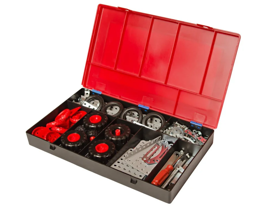 Завдяки цьому конструктору дитина може розвивати фантазію, складаючи різні моделі, та отримувати практичні навички роботи з металевими виробами, що знадобиться у дорослому житті.