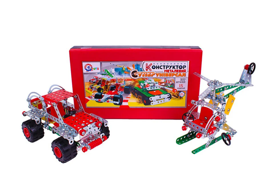 Конструктор металевий ТехноК Суперуніверсал - металевий конструктор вітчизняного виробника з розширеними дизайнерськими можливостями завдяки цікавим різнобарвним пластиковим деталям.