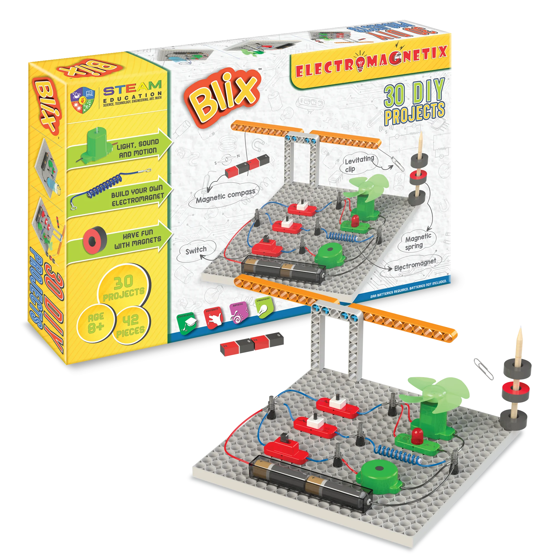 Діти зможуть побудувати власні електромагніти, вивчити, як працює електричний ланцюг, та експериментувати з різними магнітними іграми. Вони навчаться розуміти складні наукові концепції, такі як світло, звук, рух, а також основи електротехніки та магнетизму, все це під час захоплюючої гри.