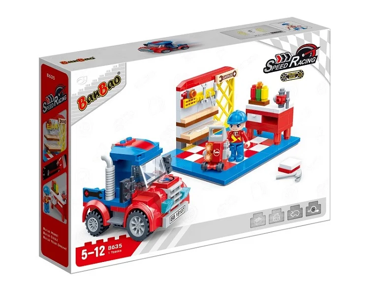 Яскравий пластиковий конструктор BanBao "Швидкісні гонки" Ремонт автомобіля приверне увагу вашої дитини і не дозволить їй нудьгувати. За допомогою елементів конструктора дитина зможе зібрати справжню ремонтну станцію. У комплект входять 1 фігурка, наклейки і барвиста інструкція по збірці.