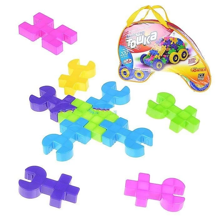 Рекомендований для діток старше трьох років, захоплюючий конструктор «Майстер Тошков» (220 дет.) 80037UNK - універсальний набір, який відмінно підійде як для домашнього використання, так і для дитячого саду. Всі компоненти виготовлені з міцної пластмаси, що дозволяє грати з дитячим набором як в приміщенні, так і на свіжому повітрі в суху погоду. Різнобарвний блоковий конструктор включає в себе 220 пластмасових «цеглинок», які з'єднуються один з одним за принципом лего. За допомогою конструктора малюк зможе зібрати велику, кольорову машинку на протекторних колесах, яку можна використовувати для сюжетно-рольових ігор. Також дитина буде з ретельністю і інтересом будувати різні будиночки, гаражі для іграшкових машинок, фортеці та все, що йому підкаже його невгамовна дитяча фантазія. Деталі конструкторів з представленої лінійки комбінуються між собою, що дозволяє розширити домашню колекцію. Ігровий набір стане вдалим вибором в якості подарунка для хлопчика старше трьох років.