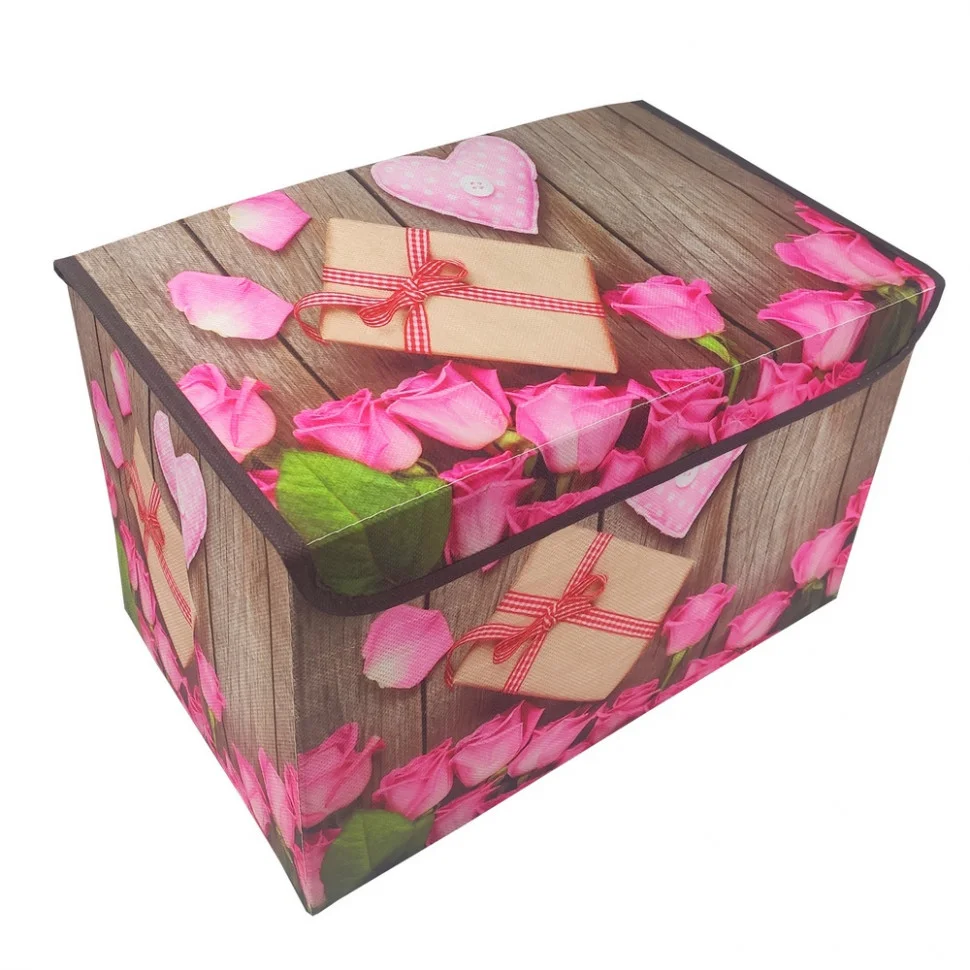 Кошик прекрасно підходить для компактного зберігання як дитячих іграшок, так і інших речей. У складеному вигляді він не займає багато місця, зручно складається і розкладається. Кошик закривається зверху кришкою на липучці.