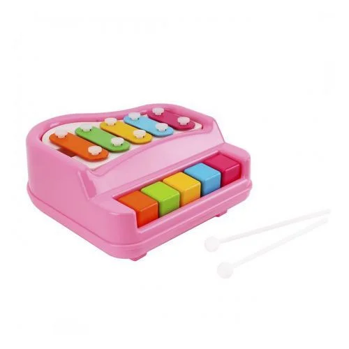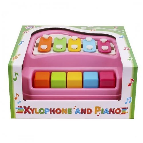 Ксилофон пластиковий. Має п'ять металевих пластин для відбивання паличкою і п'ять кнопок для натискання. При взаємодії з пластинами та кнопками буде звучати певна нота. Таким чином можна грати веселі мелодії. Сподобається юним музикантам. Також в комплекті є ноти для 6 пісень, які можна зіграти та пластикова паличка для гри. Гра є чудовою розвагою та корисною річчю. Дитина зможе вчити кольори, звуки, розвивати моторику рук та координацію.