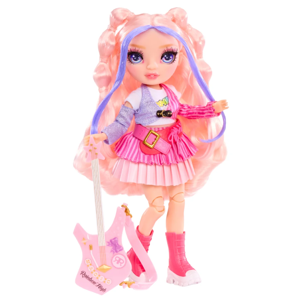 Лялька RAINBOW HIGH серії "Junior High Rockband" – БЕЛЛА – стильна красуня з волоссям ніжних рожевого та бузкового кольорів.