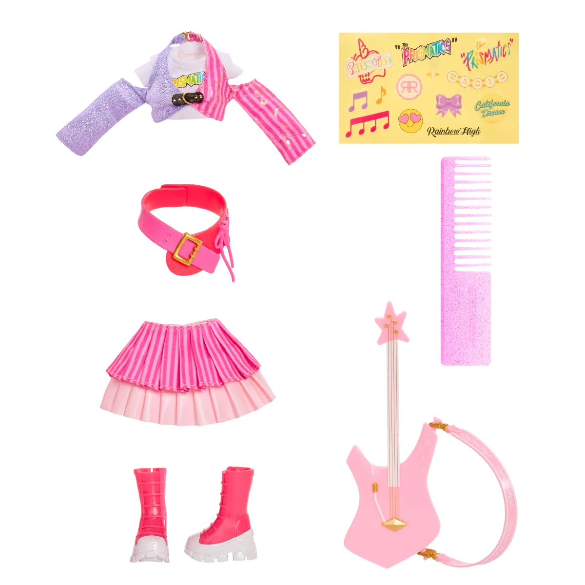 1 худі, 1 аркуш, 1 лялька, 1 ремінь, 1 пара взуття, 1 пара шортів, 1 іграшкова бас-гітара з ремінцем