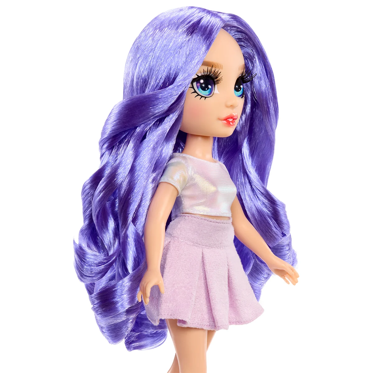 Знайомтесь із Вайолет – витонченою принцесою пастельного шику! Її ніжний ліловий лук створює відчуття легкої мрійливості, а пурпурове волосся створює додає яскравого, грайливого акценту в образі. Вайолет рухається з елегантністю й впевненістю, немов задає власний ритм моді, залишаючи за собою шлейф чарівності.