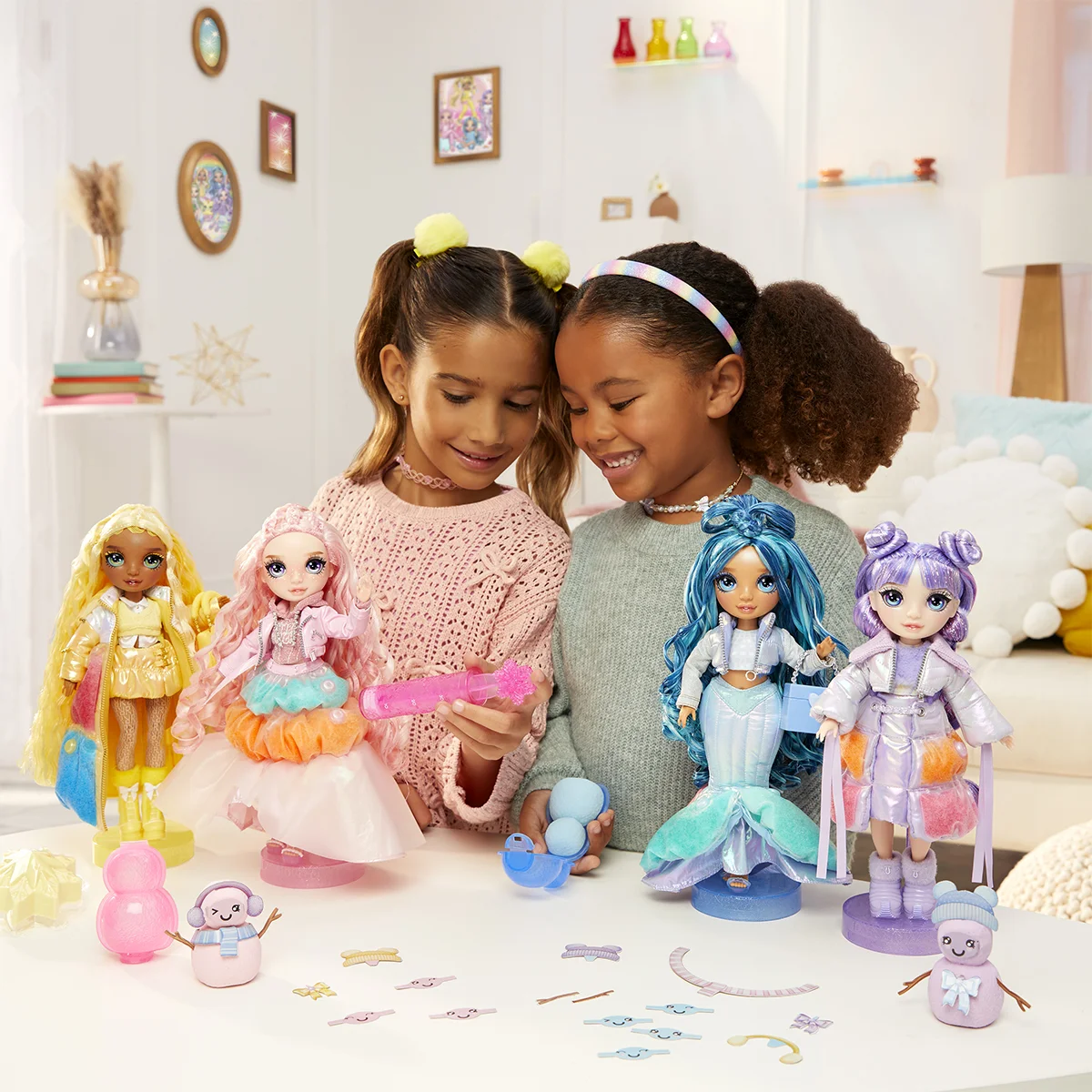 Зустрічайте сніжну колекцію RAINBOW HIGH! Зимове вбрання модних лялечок серії "Winter Wonderland" не лише чудове, а й з чарівним «снігом» всередині, який перетворить кожне вбрання на дивовижне мистецтво! Просто додайте води та спостерігайте, як одяг заповнюється кольоровим снігом. Ще у ляльки є власний набір для створення сніговика з кінетичного піску, та кумедними аксесуарами. Збери усіх 4 стильних подруг, щоб створити свою модну веселку, що сяє!