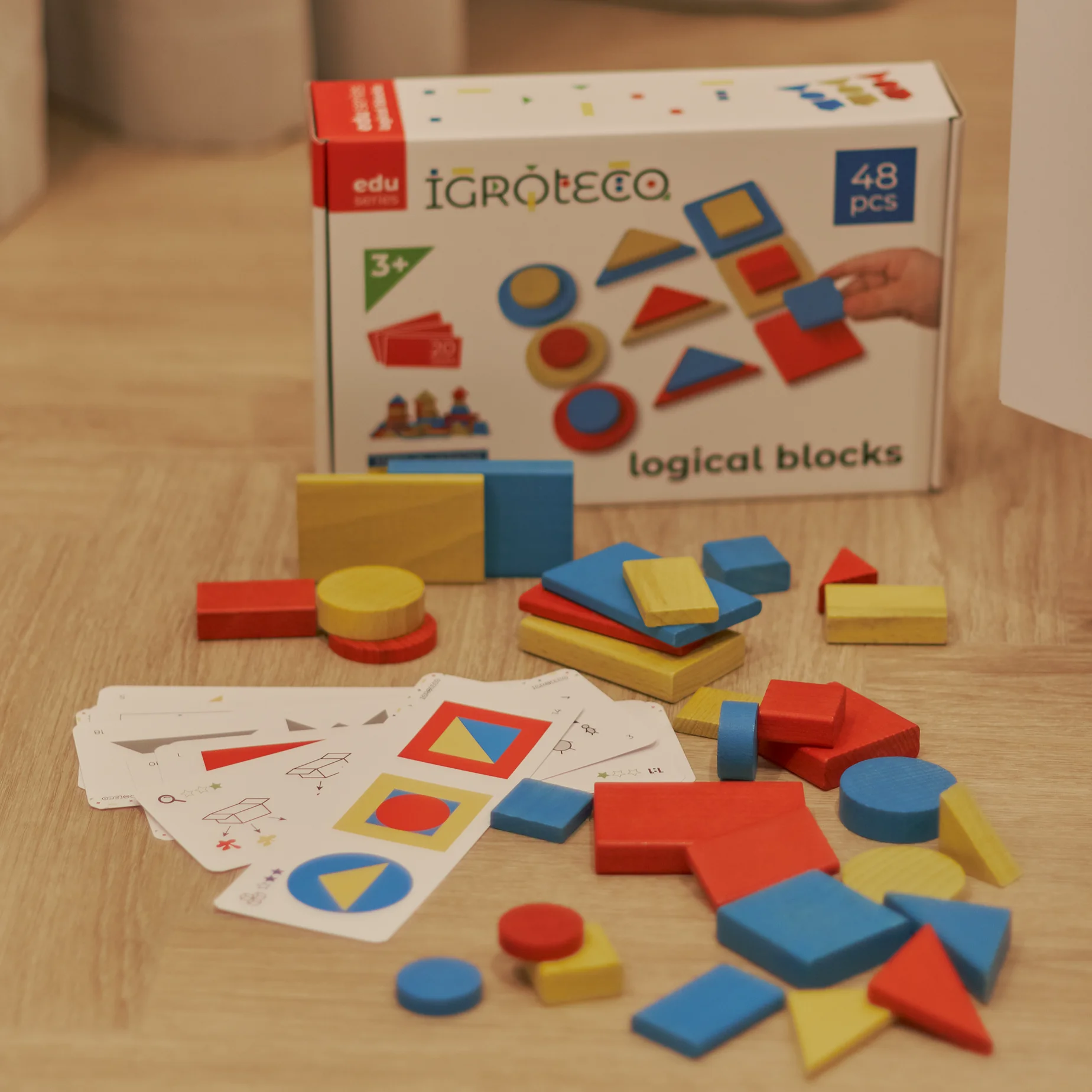 - 48 фігур, кожна з яких відрізняється від інших за чотирма параметрами - форма, колір, товщина, величина