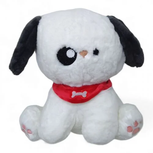 Чарівна дитяча іграшка у вигляді кумедного пухнастого цуценя. Іграшка виконана з якісних і дуже приємних на дотик тканин. Навколо шиї у цуценя повʼязана яскрава хустинка. Мордочка та лапки вишиті на тканині. Буде чудовим подарунком як дитині, так і дорослому. Розмір іграшки: 30х30х25 см.