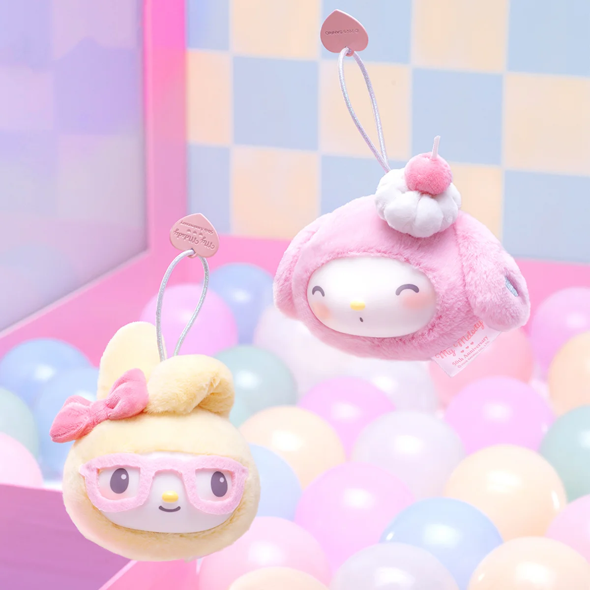 Зануртеся у світ ніжності разом з My Melody! Ця серія м’яких іграшок-сюрпризів демонструє затишні образи з капюшонами, бантиками та помпонами — ідеальні як приємний щоденний аксесуар або декор.
