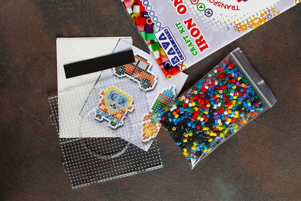 Зберіть на планшеті фігурки за схемами, пропрасуйте праскою через термопапір, приклейте магнітну стрічку і магніт готовий!