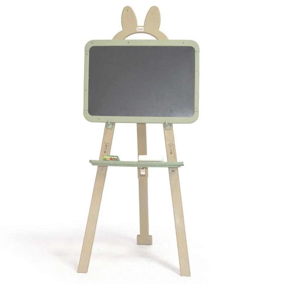 У дошці для малювання Doloni 013777/02eco все продумано до дрібниць. Вона – дуже компактна в розібраному вигляді і при цьому – легко та швидко складається. Ніжки мольберта вставляються одна в одну, між ними кріпиться піддон. На такій поличці зручно зберігати крейду і маркери, губку та інші аксесуари. Залежно від росту дитини дошку можна встановити на різних рівнях.