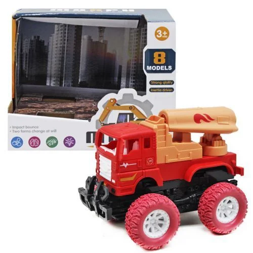 Інерційна машинка із великими колесами. При натисканні на бампер або зіткненні машини з перешкодою корпус піднімається. Розмір іграшки – 15х11х9,5 см., діаметр коліс – 4,5 см. Виконано з міцного пластику.