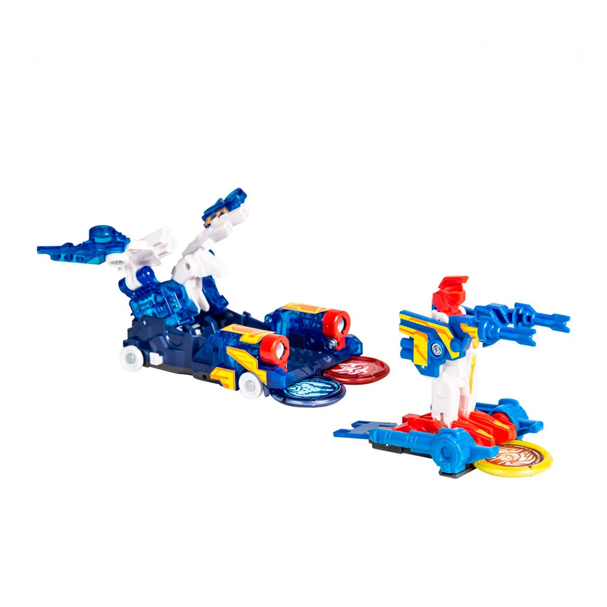 - РОЯЛІС - тубро-скрічер, трансформується в крутого лицаря. Для цього з'єднайте дві машинки, зловіть два диски і активуйте запуск! Зробіть подвійний перекид на 360 ° за допомогою третього диска і подвійна трансформація завершена!